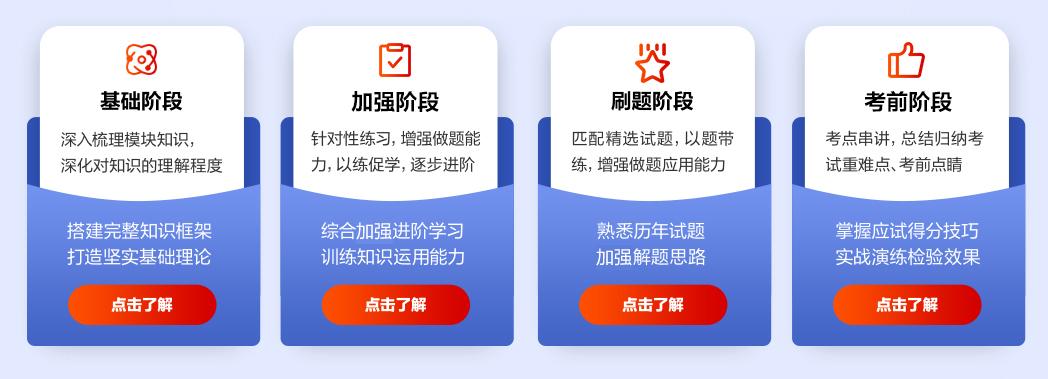 针对不同基础水平、学习时间、备考周期设计课程,满足不同备考人群需求。